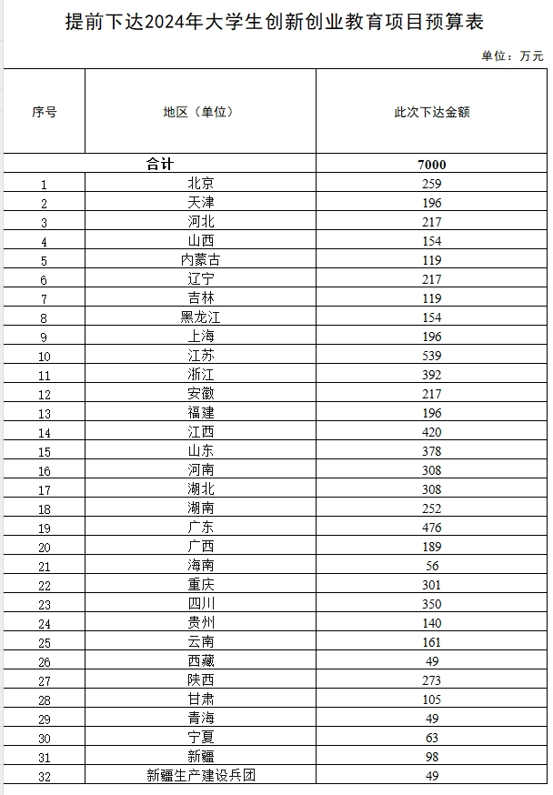 日前,财政部发布《关于提前下达2024年中央专项彩票公益金支持大学生创新创业教育项目预算的通知》(财教〔2023〕191号,以下简称《通知》)。 《通知》指出,为提高预算完整性,加快支出进度,支持大学生创新创业教育发展,现提前下达2024年大学生创新创业教育项目预算7000万元,用于支持各地依托省内高校建设国家级创新创业学院、国家级创新创业教育实践基地。 《通知》要求各省(自治区、直辖市)及新疆生产建设兵团要按照预算管理有关要求,做好预算编制、指标安排,完善绩效目标管理,做好绩效运行监控和绩效评价,确保财政资金安全有效。 |