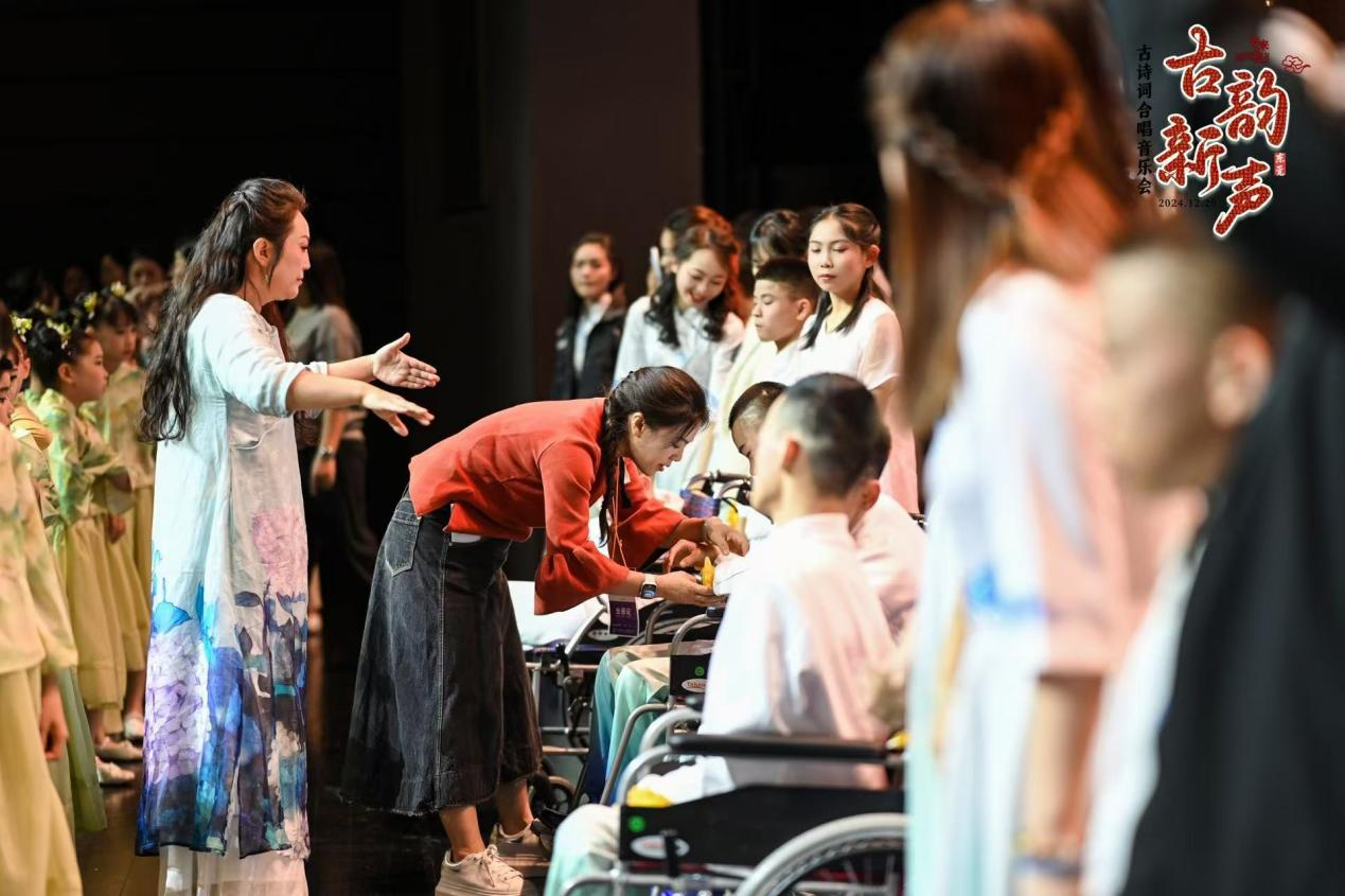 2023年,福利中心组建了一支由30名孤残弃困残障儿童组成的“慈幼之声”合唱团,在东莞市歌唱协会副会长、东莞市可园中学音乐科组王丽娟老师的专业带领下,合唱团的孩子们在音乐水平提升、团队协作增强、个人发展促进等方面均有明显进步,凭借他们的精彩演绎,携手可园中学圆梦合唱团,登上了东莞市玉兰大剧院,参与演出未来之星“可中之声”等2场音乐会,将音乐疗愈具象化。