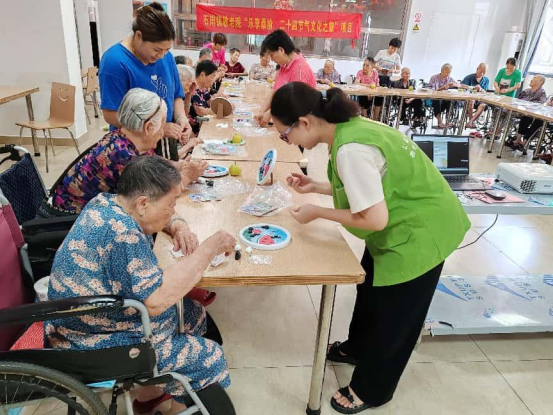 今年7月,石排镇敬老院举行手工粘土DIY活动